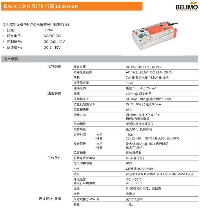 • EF24A機(jī)械式自復(fù)位風(fēng)門(mén)執(zhí)行器
