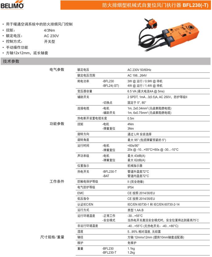 • BFL230防火排煙型機(jī)械式自復(fù)位風(fēng)門(mén)執(zhí)行器