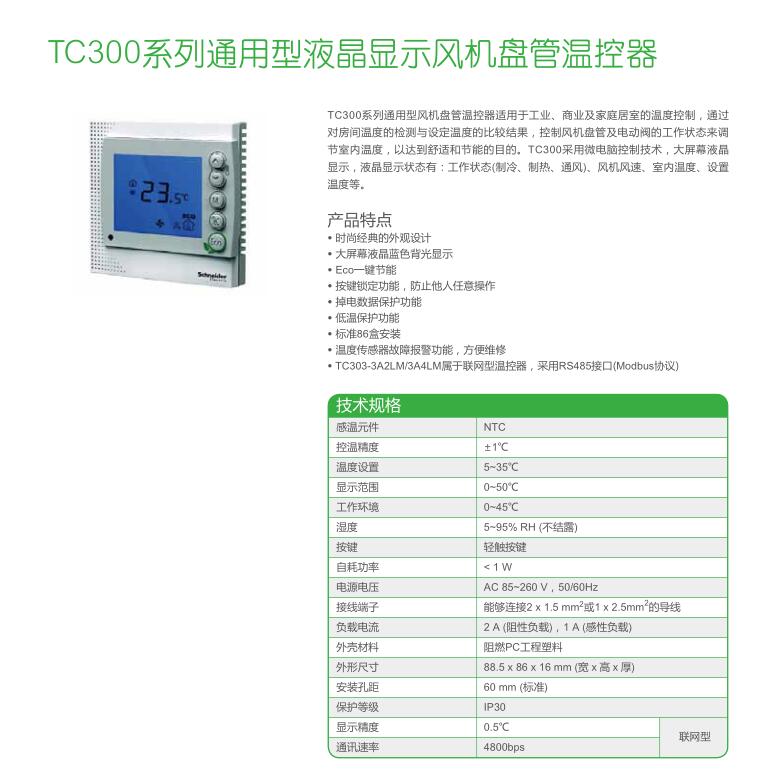 • TC300系列通用型液晶顯示風(fēng)機(jī)盤管溫控器