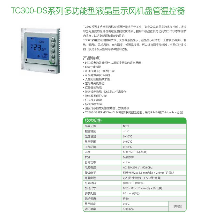 • TC300-DS系列多功能型液晶顯示風機盤管溫控器
