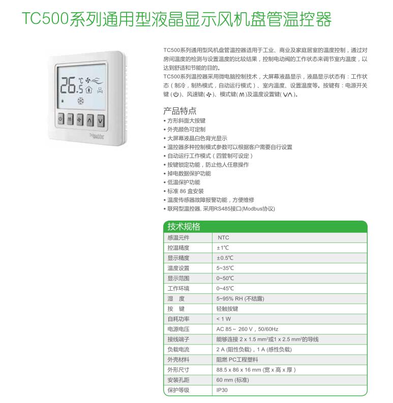 • TC500系列通用型液晶顯示風(fēng)機(jī)盤管溫控器